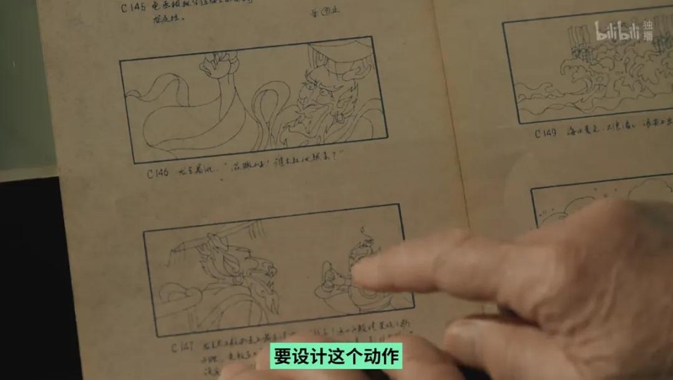 纪录片中,《哪吒闹海》的主创之一张澋源40年后重绘敖丙