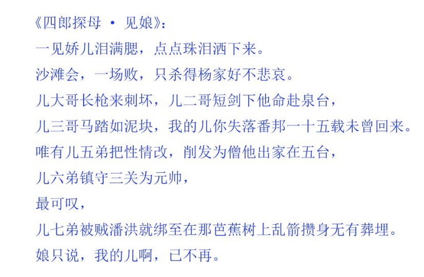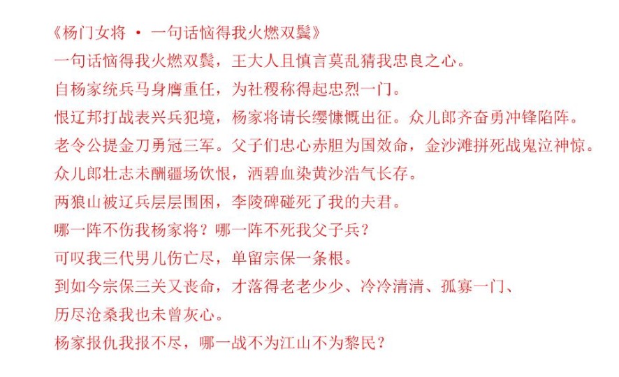 实在不行,去听听《四郎探母·见娘》跟《杨门女将·一句话恼得我火燃双鬓》的唱段。人家就没有一个字是多余的。