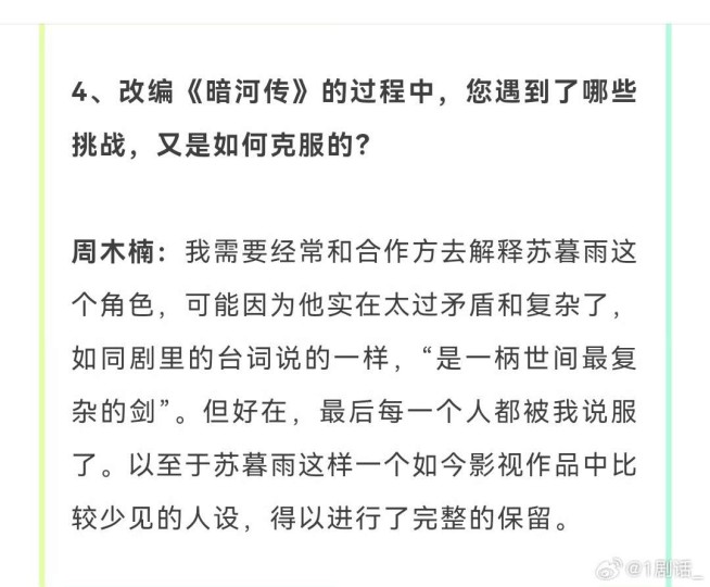 原作者加编剧在开拍前要不断给资方解释苏暮雨的人设和复杂度,也证明了这个角色确实不寻常,不普通,不第一眼抓人,不好演
